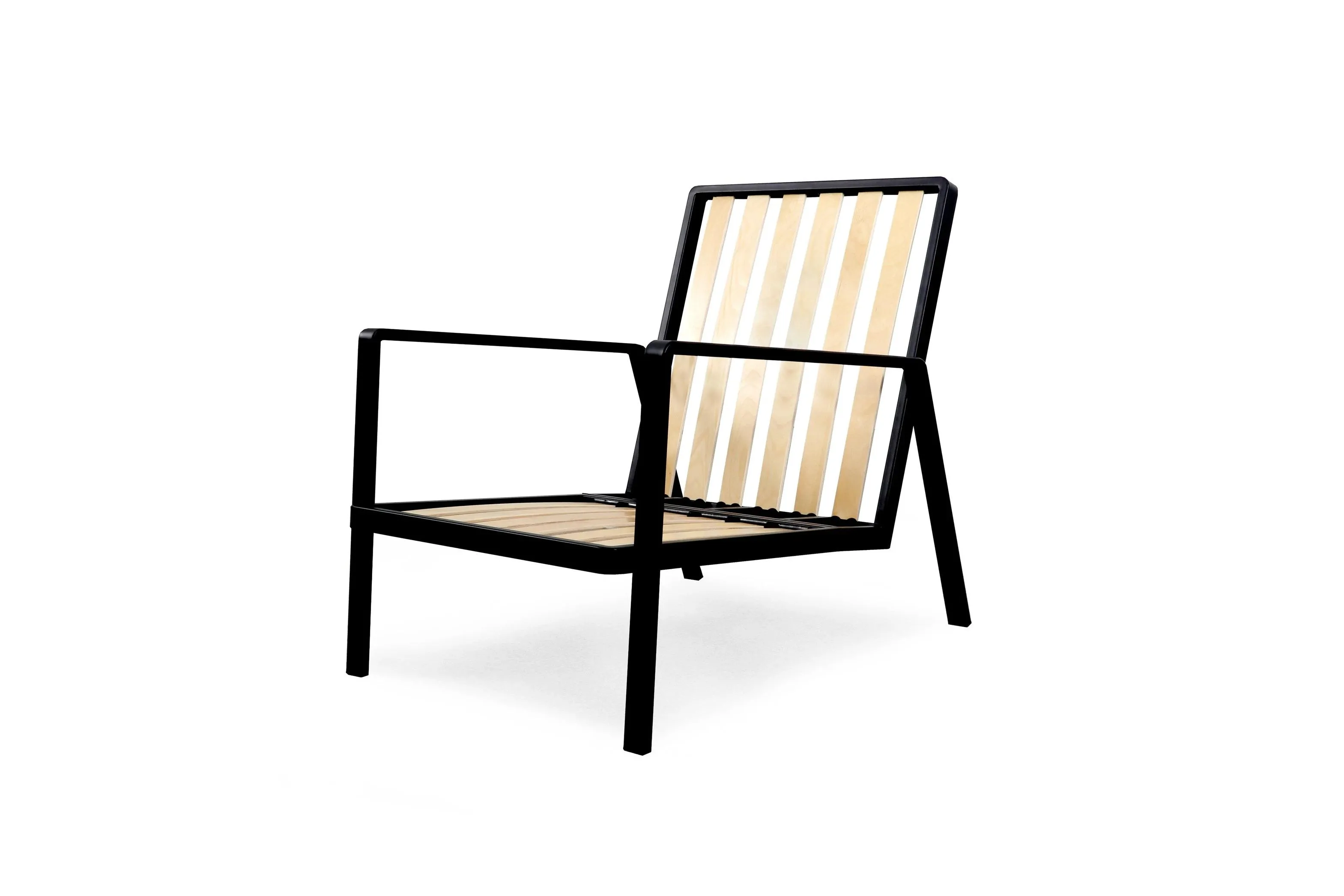 Каркас кресла выполнен из ортопедических ламелей из фанеры и профильной стальной трубы.