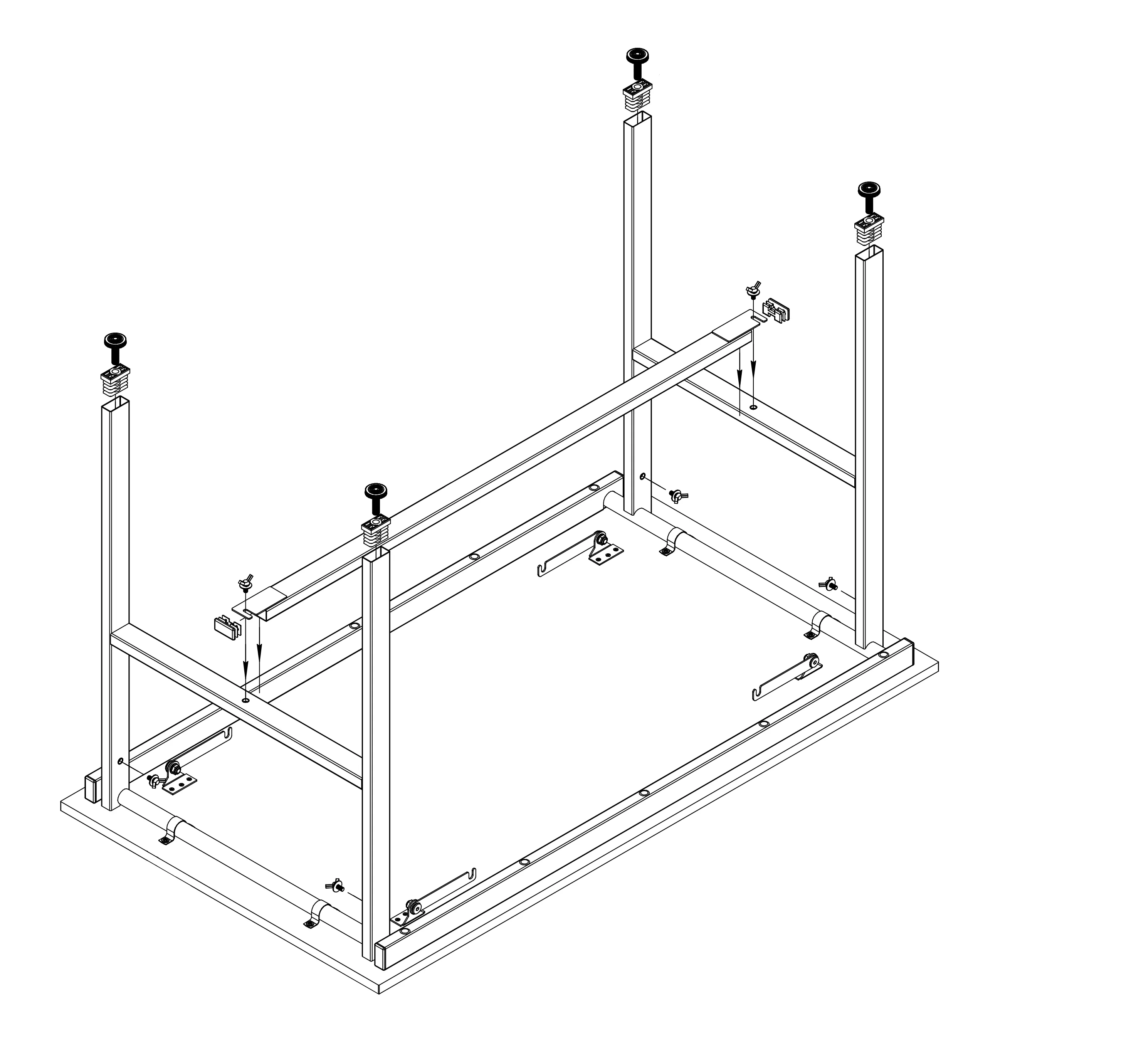 Раскладной стол "Брион 1" с прямоугольной столешницей. Опорами служат две раскладных металлические рамы, соединённые между собой сборной / разборной поперечиной. Рамы фиксируются крючками и затягиваются несъёмными винтами ("барашек"). Высота стола регулируется.