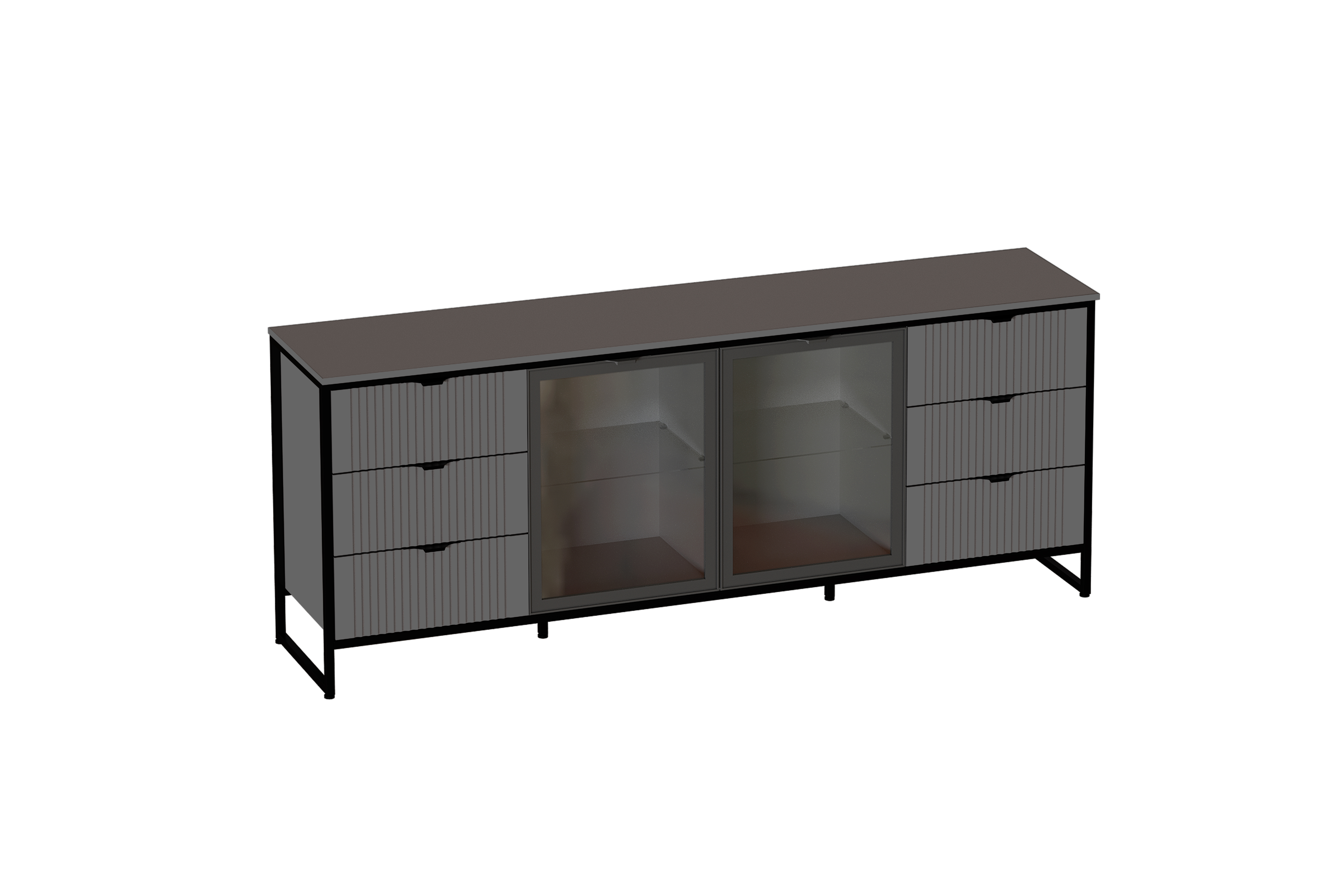 Тумба 2 дв 6 ящ "Нора" гостиная со стеклянными дверями Графит