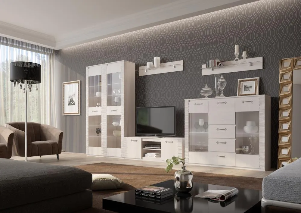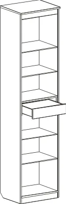 В витрине за общей стеклянной дверцей располагаются выдвижной ящик, четыре стеклянные и одна жёсткая полка. Четыре светильника «HLT Prismatic FT» для подсветки полок и блок питания в стандартную комплектацию не входят и приобретаются отдельно.